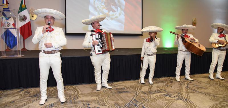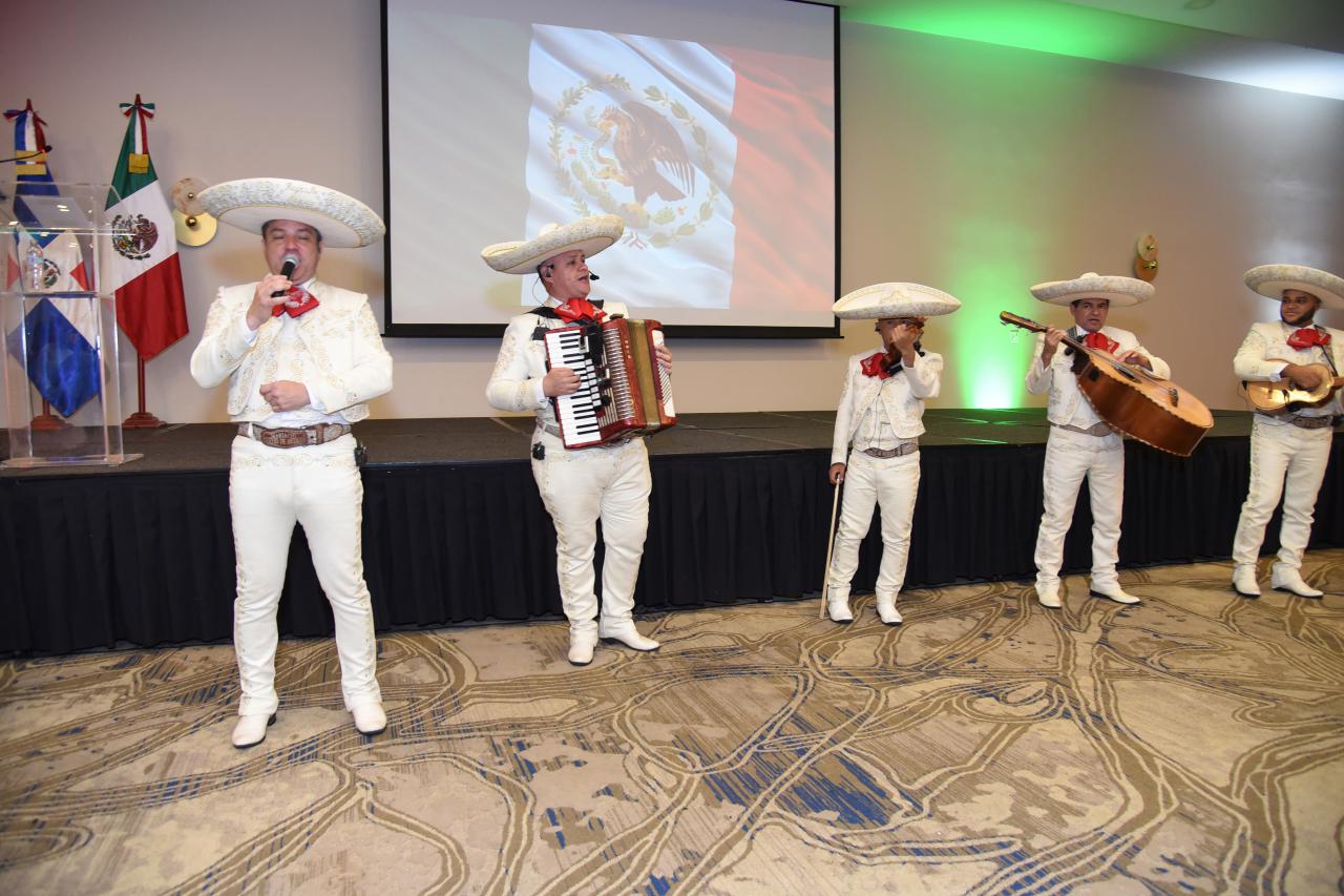 La velada estuvo acompañada por la música del mariachi, emblema cultural por excelencia de México, cuyas interpretaciones tradicionales y populares deleitaron a los asistentes. Además, se ofreció una experiencia gastronómica con degustaciones de tequila, exhibición de productos y platillos típicos, que permitieron a los invitados sumergirse en los sabores y tradiciones que distinguen a México en el mundo.
