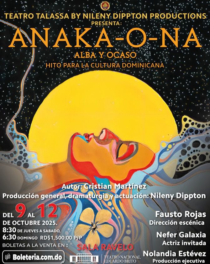 ANAKA-O-NA. Es una obra de teatro super inmersiva que busca honrar nuestra máxima heroína ancestral, por medio de canciones, proyecciones e interpretación. Es una investigacion que expone la realidad de una cacica, a la llegada de los colonizadores a nuestra Kiskairy. Este evento va dirigido a las familias con la finalidad de mostrar nuestra hermosa herencia ancestral y la fortaleza de nuestra raza. Del 9 al 12 de octubre en la Sala Ravelo.