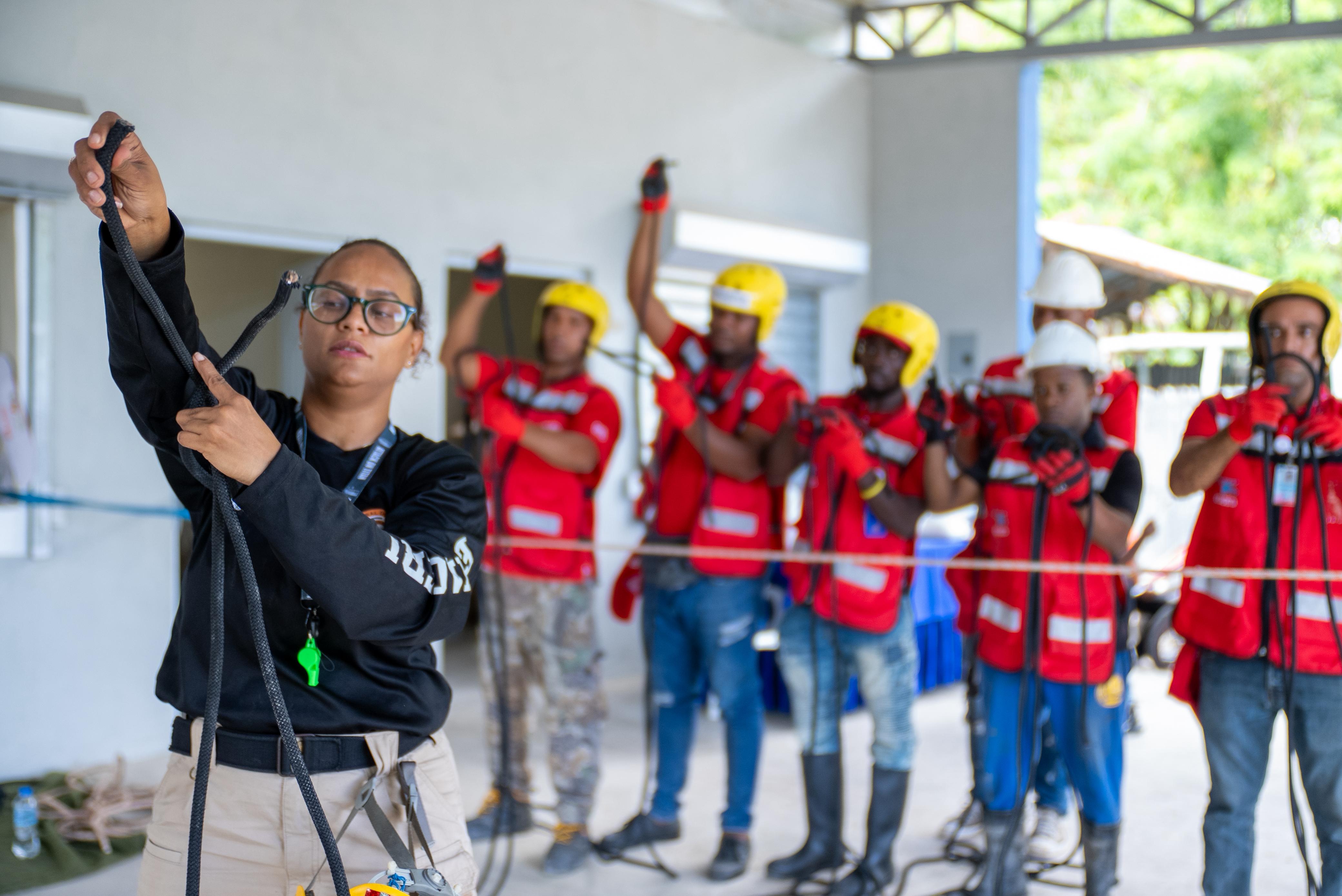Chrisaly Abreu, técnico en rescate instruye a los brigadistas de cómo usar los nudos en un rescate de emergencia