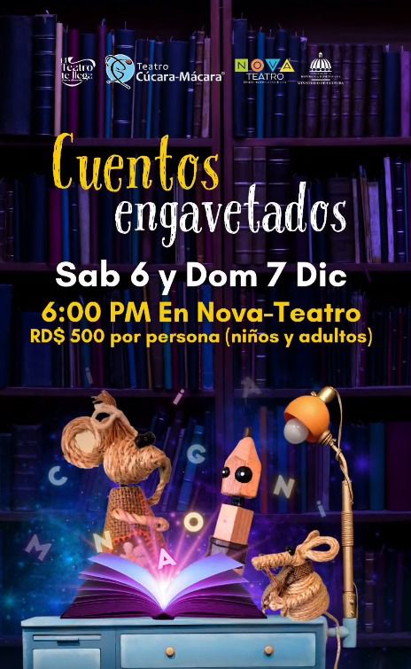 Cuentos Engavetados. Un escritor sin ideas descubre que, dentro de su viejo escritorio, viven historias increíbles: un lápiz que vence sus miedos, el ratón Pérez buscando el mejor corazón para su hija… y el ratoncito Nino, que transforma la tristeza de su pueblo a través del arte. Un espectáculo lleno de ternura, risas, títeres y mucha magia para disfrutar en familia.