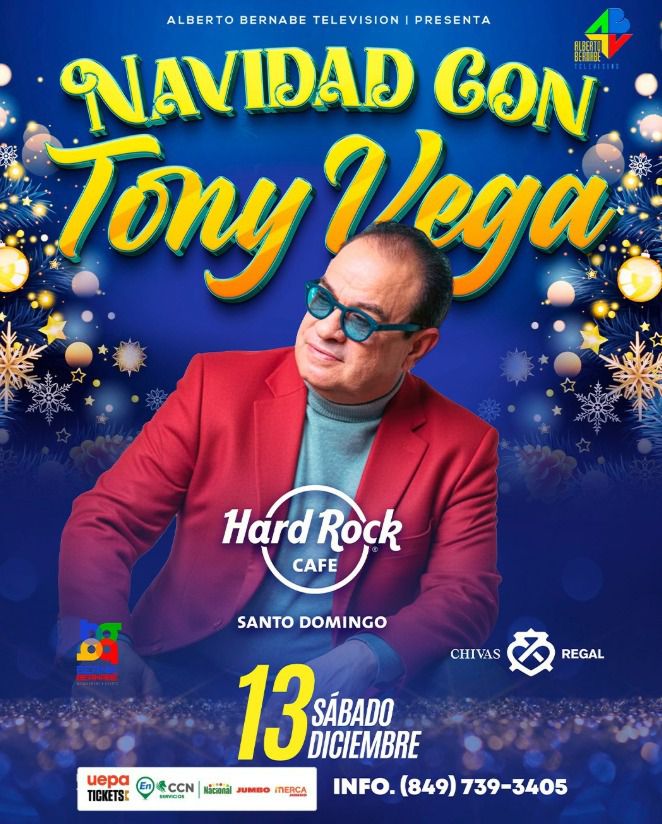 Navidad con Tony Vega. Sábado 13 de Diciembre, 10:00 P.M.📍Hard Rock Café, Santo Domingo