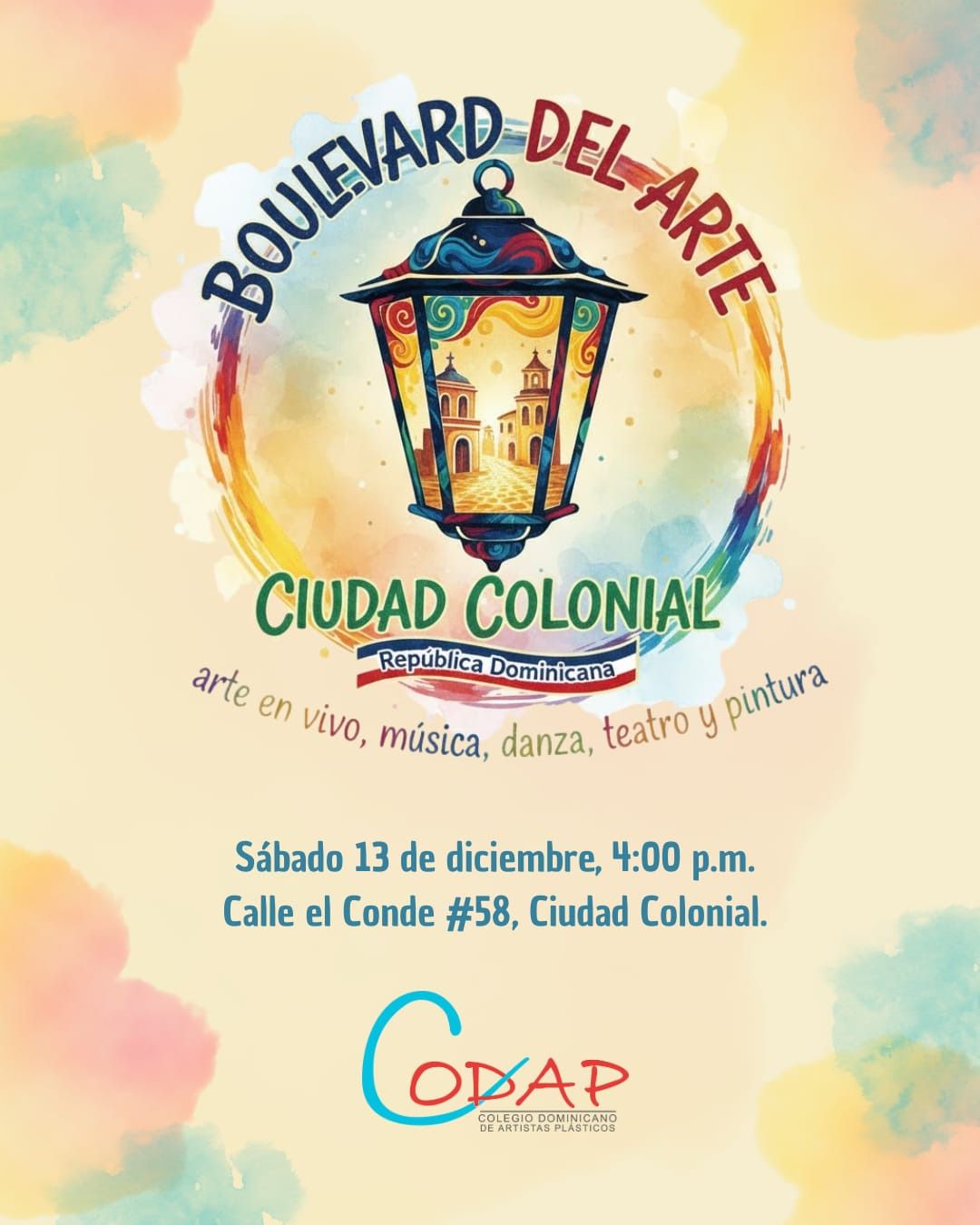 El Arte Emerge: Nace El Boulevard del Arte Ciudad Colonial. El Colegio Dominicano de Artistas Plásticos (CODAP) enciende una nueva luz en el corazón histórico de Santo Domingo. Más que una exposición, lanzamos El Boulevard del Arte Ciudad Colonial, una experiencia permanente, interactiva y vibrante que fusiona la historia de la Ciudad Colonial con el pulso creativo de nuestros artistas dominicanos.