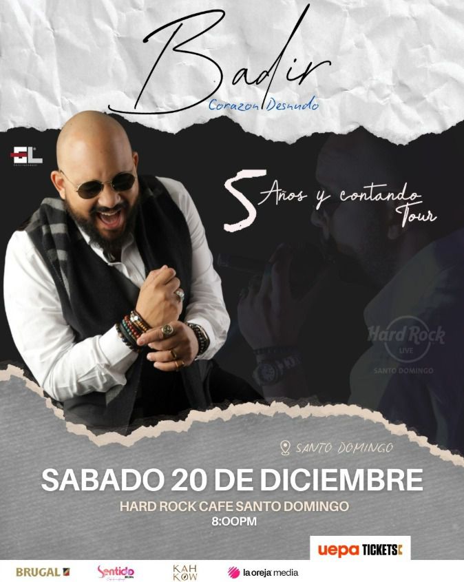 Badir "Corazón Desnudo: 5 Años y Contando". 20 de Diciembre, 8:30 P.M.📍Hard Rock Café, Santo Domingo.