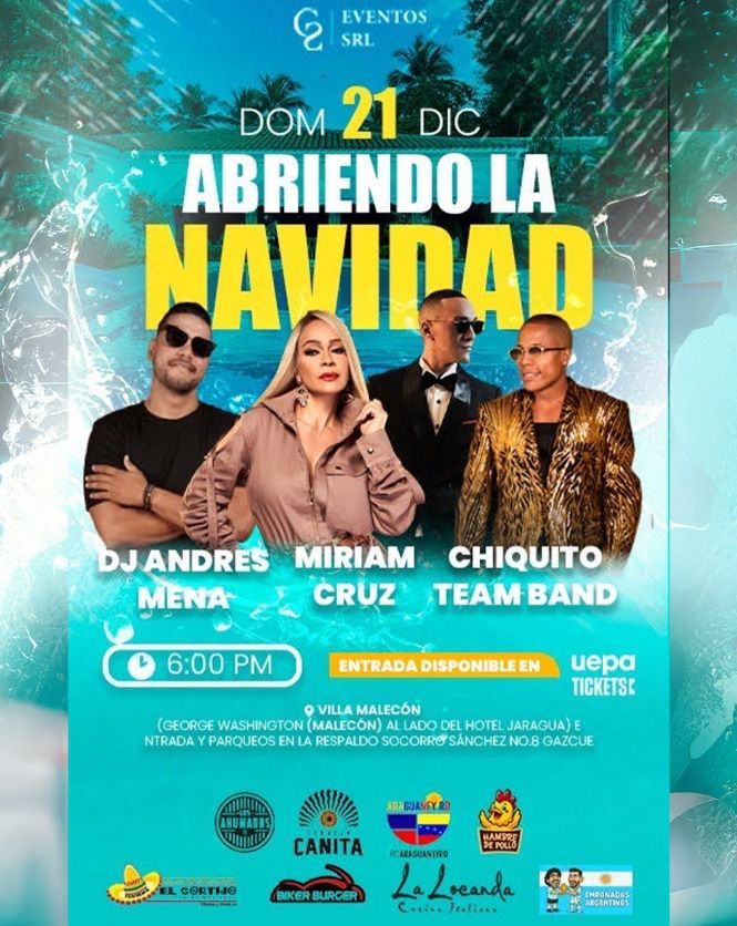 Abriendo la Navidad "Mirian Cruz, Chiquito Team Band & DJ Andres. Domingo 21 de Diciembre, 6:00 P.M.📍Villa Malecón