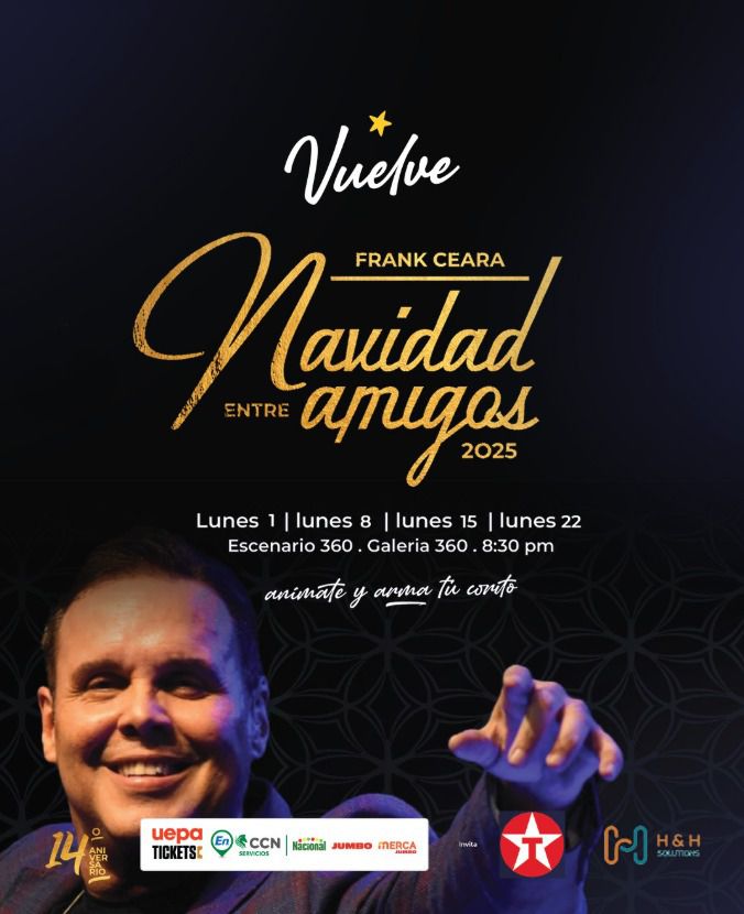 Frank Ceara: Navidad entre amigos. 15 y 22 de Diciembre, 8:30 P.M.📍Escenario 360.