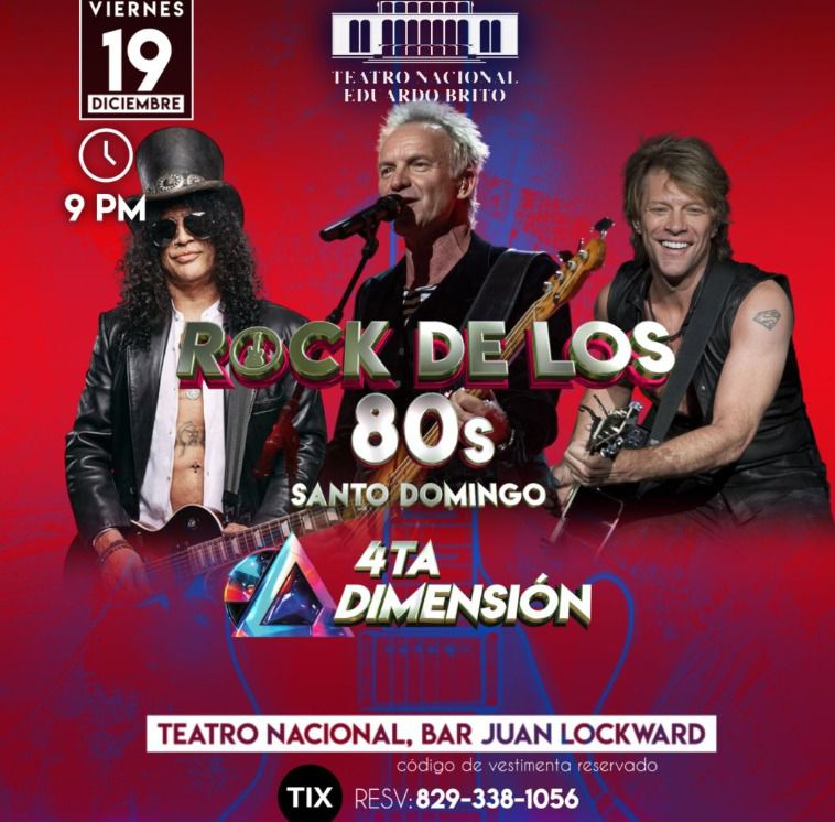 Rock 80s by 4ta Dimension. Santo Domingo, diciembre 19, 2025 9:00 pm, Teatro Nacional, Bar Juan Lockward.