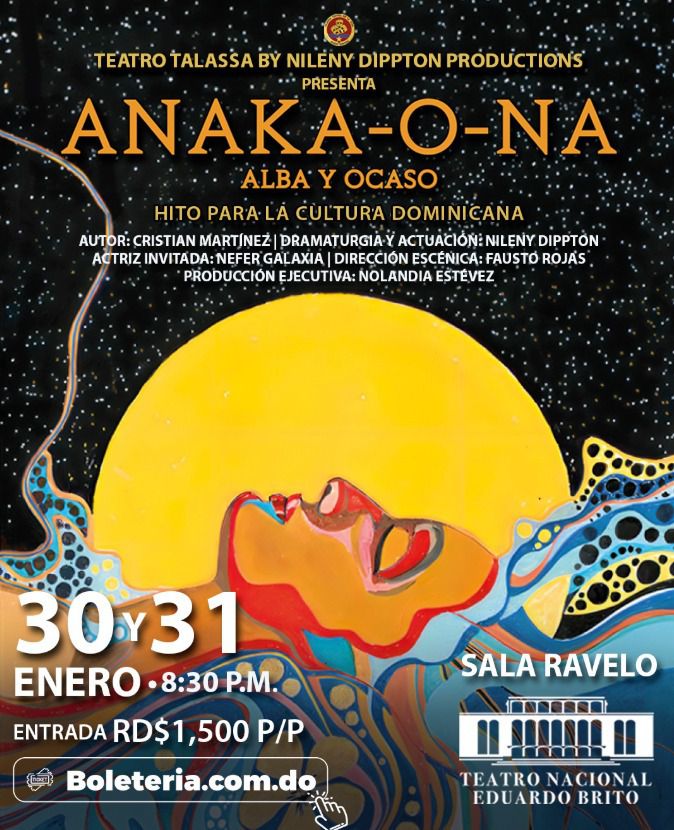 El Teatro Nacional presenta "ANAKA-O-NA", una obra inmersiva sobre una cacica ancestral. El Teatro Cúcara-Mácara ofrece "La tonta aventura del tontísimo gato". Casa de Teatro rinde homenaje a Ricardo Arjona. Además, hay diversas exposiciones y eventos musicales en Santo Domingo, incluyendo presentaciones gratuitas en la Ciudad Colonial.
