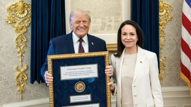 Trump confirmó el gesto a través de su red Truth Social, donde lo describió como una muestra de “respeto mutuo” y expresó su admiración por Machado, a quien calificó como una mujer que “ha pasado por muchísimo”. La Casa Blanca difundió además una fotografía del momento en que el presidente sostiene la medalla enmarcada, con Machado a su lado. La dirigente explicó que la entrega simboliza la gratitud del pueblo venezolano hacia quien, según ella, ha respaldado la causa de la libertad en su país.