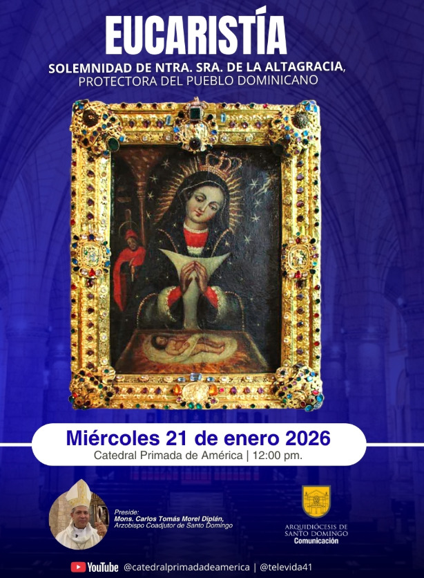 Se celebrará una Eucaristía Solemne en honor a Nuestra Señora de la Altagracia, protectora del pueblo dominicano, el 21 de enero de 2026 a las 12:00 p.m. en la Catedral Primada de América, presidida por Mons. Carlos Tomás Morel Diplán, Arzobispo Coadjutor de Santo Domingo.