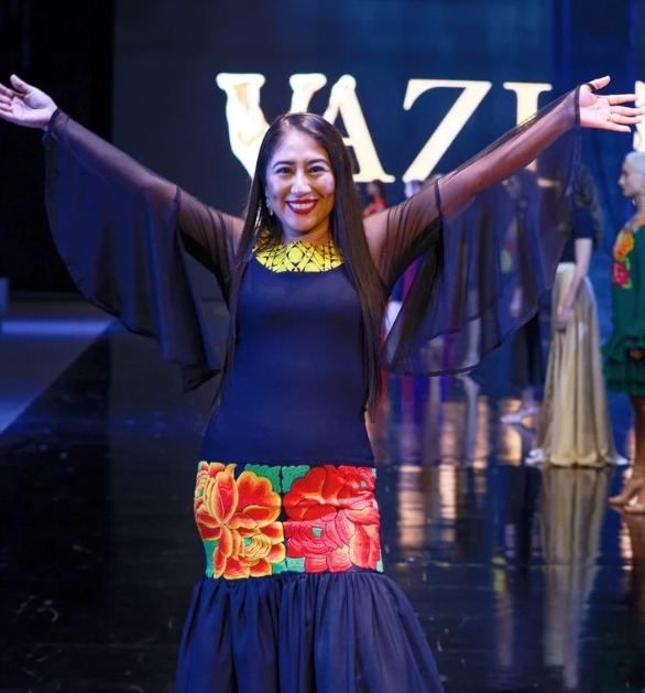La diseñadora, nacida en la comunidad indígena zapoteca, debutó en este espacio de promoción de la moda para mostrar piezas inspiradas en la fortaleza de las mujeres de esa región y la belleza de sus tradiciones.