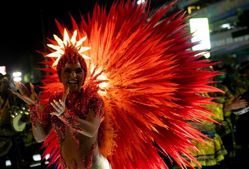 La reina del tambor Mileide Mihaile, de la escuela de samba Unidos da Tijuca, se presenta durante las celebraciones del Carnaval en el Sambódromo de Río de Janeiro. Foto AP/Bruna Prado.