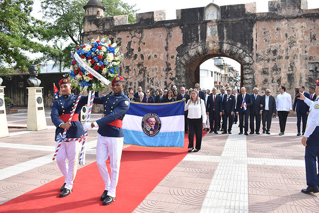 La conmemoración de este viernes inició con el solemne enhestamiento de la bandera nacional en la parte más alta del Baluarte del Conde, rememorando el momento histórico en que Francisco del Rosario Sánchez izó el lienzo por primera vez para anunciar al mundo el nacimiento del Estado dominicano.