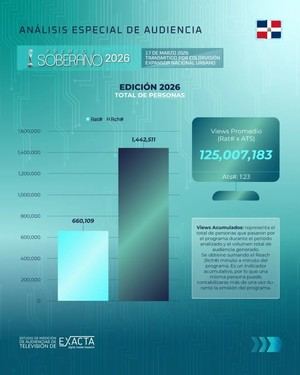 La edición 2026 de los Premios Soberano consolidó su liderazgo en la República Dominicana, alcanzando 1.4 millones de espectadores y 125 millones de visualizaciones digitales. La gala destacó por su impacto en redes sociales y medios, superando expectativas de audiencia y marcando un hito en su historia.