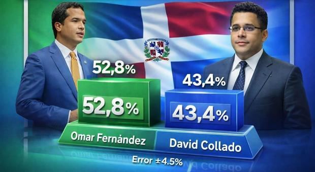 Un sondeo reciente indica que Omar Fernández (Fuerza del Pueblo) lidera las preferencias presidenciales con 52,8%, seguido por David Collado (PRM) con 43,4%. En el congreso, la Fuerza del Pueblo también destaca, proyectándose para ganar 26 senadores y el 63% de las alcaldías en las elecciones de mayo de 2028.