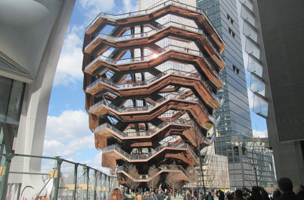 La escalera, obra del arquitecto londinense Thomas Heatherwick, se ubica en el nuevo barrio de la Gran Manzana, el cual no es más que un complejo urbanístico de grandes dimensiones, cuyo reclamo más importante son estas extrañas escaleras con las que se busca atraer a miles de turistas, además de ser una nueva fuente de ingresos para la ciudad. El complejo va desde la calle 30 a la 34 y desde las avenidas 10 y 11. La obra arquitectónica de cobre tiene el equivalente a 15 pisos de altura y está diseñado en forma de espiral en zigzag, formada por 2.500 escalones.